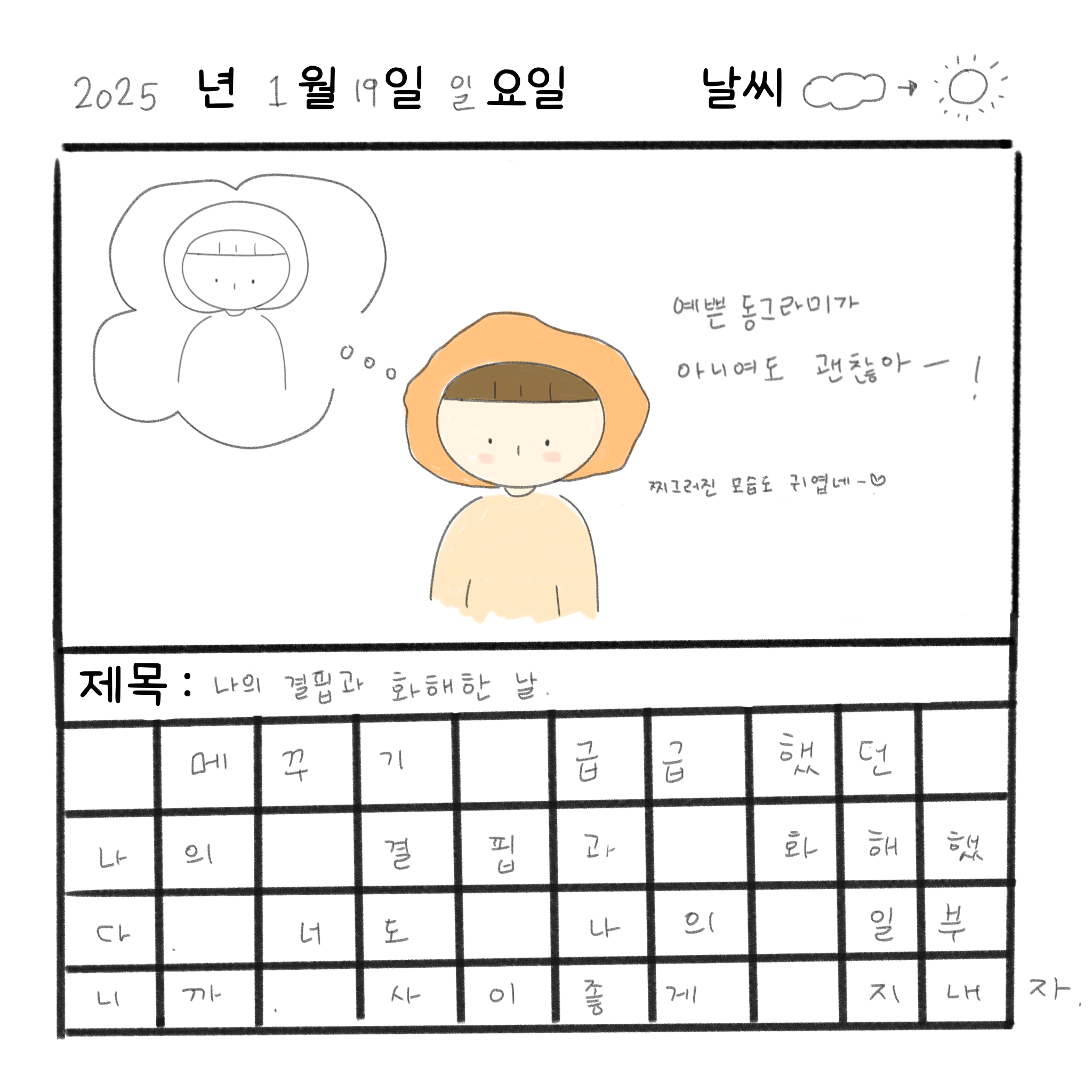 μΈμ λ κ²°νλ λΆλΆμ μ±μ°κ³ μΆμ΄ νμ΄μ. μμ νκ³ λ§€λλ¬μ΄ λκ·ΈλΌλ―Έκ° λκ³ μΆμλ° κ±°μΈ μ μ λͺ¨μ΅μ μ¬κΈ°μ κΈ° κ΅¬λ© λκ³ μΈνλΆνν λͺ¨μμ΄μκ±°λ μ. κ·Έλ° μ λͺ¨μ΅μ΄ λ―Έμ 보μμ΄μ. μ΄λ»κ² ν΄μλ μμ λκ·ΈλΌλ―Έκ° λκ³ μ μ€μ€λ‘λ₯Ό κ΄΄λ‘νμ΄μ. κ·Έλ°λ° λ§μ΄μμ, μ κ·ΈλμΌ νλ κ±ΈκΉμ? μ μ λ λκ·ΈλΌλ―Έκ° λκ³ μΆμμκΉμ? κ²°νμ κΌ μ±μμΌλ§ νλ κ±ΈκΉμ?